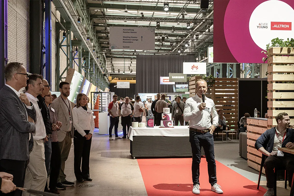 Um 12:30 Uhr stand ein ganz besonderer Moment im Mittelpunkt: Alltron feierte sein 40-jähriges Bestehen. CEO Andrej Golob hielt eine Ansprache, in der er die Entwicklung des Unternehmens nachzeichnete und gleichzeitig einen Blick in die Zukunft warf. Unter dem Motto «Forever Young» verdeutlichte er, dass Erfahrung und Dynamik keine Gegensätze sind, sondern die Basis für anhaltende Innovationskraft. Der Applaus zeigte, dass seine Worte bei Mitarbeitenden, Partnern sowie auch Gästen gleichermassen Anklang fanden – und passend zum Anlass wurde der Jubiläumsmoment mit einer festlichen Torte gefeiert.